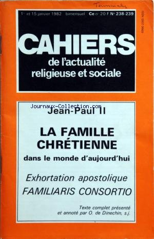 CAHIERS DE L'ACTUALITE RELIGIEUSE ET SOCIALE du 01/01/1982 - JEAN-PAUL II / LA FAMILLE CHRETIENNE DANS LE MONDE D'AUJOURD'HUI - EXHORTATION APOSTOLIQUE FAMILIARIS CONSORTIO / TEXTE COMPLET PRESENTE ET ANNOTE PAR DE DINECHIN PDF Kindle